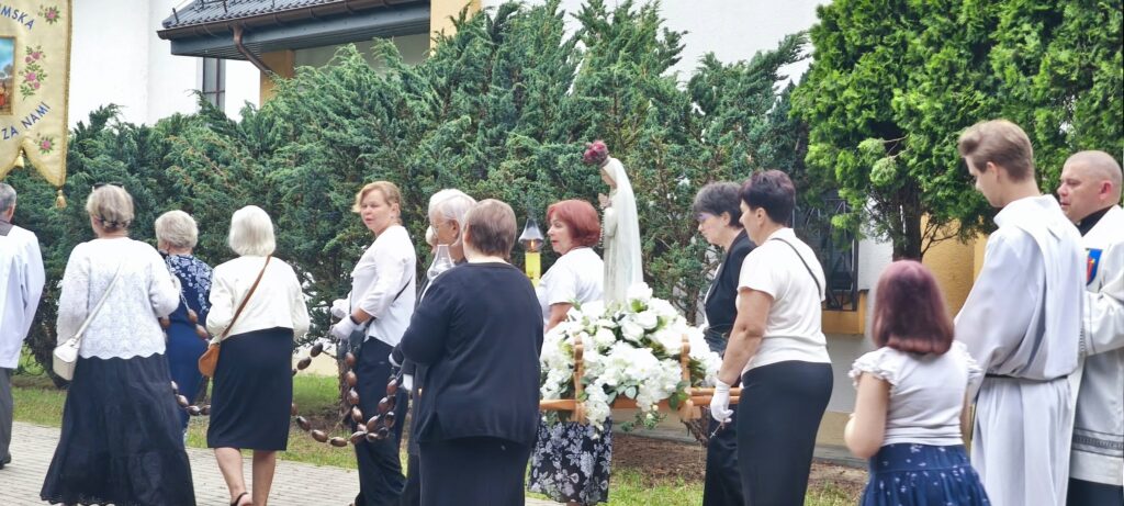 13 lipca wokół Kościoła Garnizonowego pw. Św. Gabriela Archanioła w Zegrzu odbyła się procesja fatimska, będąca kontynuacją tradycji zapoczątkowanej objawieniami w Fatimie w 1917 roku. To wtedy Maryja objawiła się dzieciom prosząc je o pokutę i modlitwę o nawrócenie świata. Widzimy, jak bardzo to wezwanie jest aktualne i dotyczy nas samych oraz miejsc i środowisk, w których żyjemy. Aby powtrzymać gniew Boży i wynagradzać za wszelkie zniewagi i świętokradztwa, modlimy się za przyczyną Maryi w nabożeństwach fatimskich o łaskę nawrócenia biednych grzeszników oraz we wszystkich naszych intencjach. Wierni po Mszy Świętej zgromadzili się na wspólnej modlitwie różańcowej, niosąc figurę Matki Bożej Fatimskiej i rozważając orędzie wzywające do modlitwy, pokuty i zawierzenia Jej Niepokalanemu Sercu. Procesja była wyrazem wiary i wdzięczności wobec Maryi, a także przypomnieniem Jej apelu o nawrócenie i modlitwę o pokój na świecie. W ten sposób parafia w Zegrzu podtrzymuje pamięć o objawieniach fatimskich.